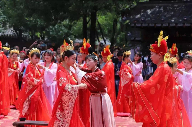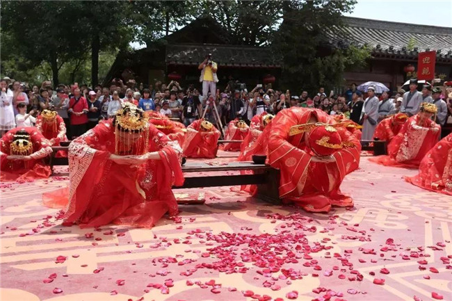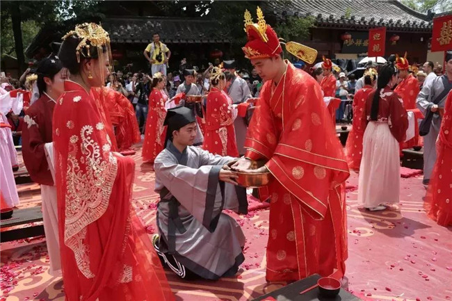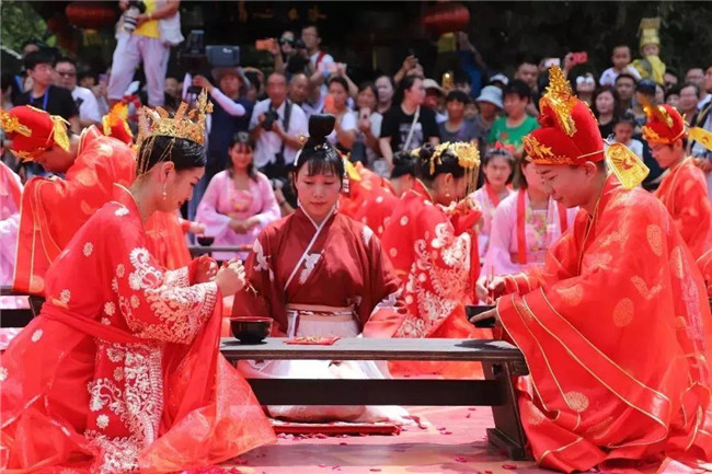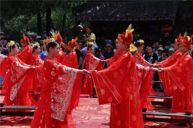 中國(guó)傳統(tǒng)禮儀,以冠婚之事為嘉禮?!抖Y記·昏義》中記載:“昏禮者,將合二姓之好,上以事宗廟,而下以繼后世也,故君子重之?!被槎Y作為傳統(tǒng)禮節(jié)的重要組成部分,是社會(huì)生活中人們關(guān)注的重要內(nèi)容。2019年8月7日,滿滿的儀式感,以愛之名,帶你走近清明上河園大宋盛世婚禮,請(qǐng)往下看,來了解下宋式婚禮傳統(tǒng)又隆重的環(huán)節(jié)