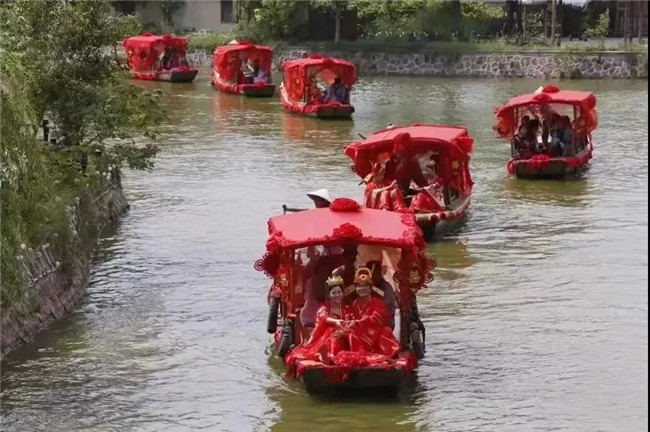 新郎新娘,停船靠岸,前往儀式現(xiàn)場(chǎng)