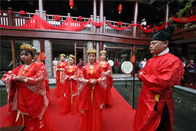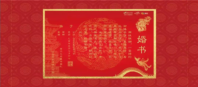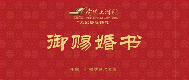 “大宋皇帝”御駕親臨,賜予七對新人可終身免費游覽清明上河園的“大宋婚書”,今后,清明上河園將是這7對新人的“娘家”,歡迎新人們隨時回來游覽、探望。