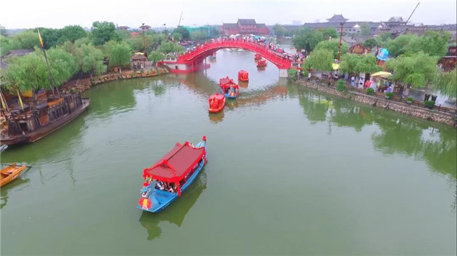 7對新人身著喜服登上精心布置的喜船,駛向充滿著幸福和祝福的彼岸!鑼鼓喧天、嗩吶齊鳴,意氣風(fēng)發(fā)地在汴河中巡游,七艘喜船一字排開,聲勢浩大,賓客如潮。