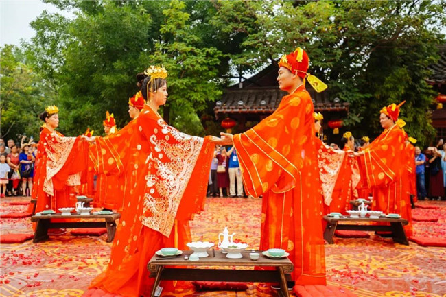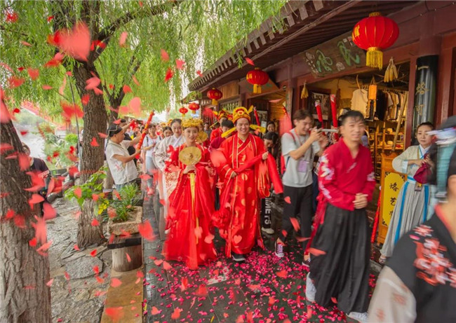 于游客,大宋盛世婚禮傳統(tǒng)又熱鬧,游客好似送嫁親友,參與了一場聲勢浩大的集體婚禮;于新人,大宋盛世婚禮激動又難忘,莊重神圣的儀式中,內(nèi)心里有著說不出來的歡喜感動。