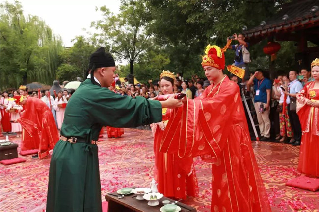 論壇由開封清明上河園景區(qū)和河南省婚慶服務(wù)行業(yè)協(xié)會主辦,河南省內(nèi)的70余家婚慶行業(yè)大咖齊聚清明上河園,就中國傳統(tǒng)婚俗的傳承等問題進(jìn)行深入探討。論壇上,河南省婚慶服務(wù)行業(yè)協(xié)會授予清明上河園景區(qū)為中原婚俗文化示范基地的稱號。