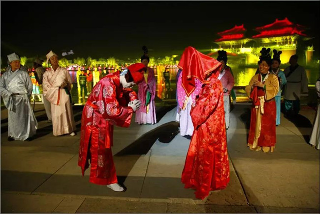 七夕文化節(jié)期間領(lǐng)取結(jié)婚證的新人,可以憑本人結(jié)婚證原件或復(fù)印件和身份證在七夕文化節(jié)期間免費夜游清明上河園!
