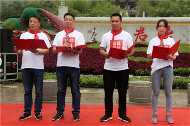 游客與車友們共同合唱《我和我的祖國》,并現(xiàn)場朗誦詩詞。他們用自己的行動向祖國獻禮,為祖國祈福,也為老君山車友狂歡節(jié)助力!