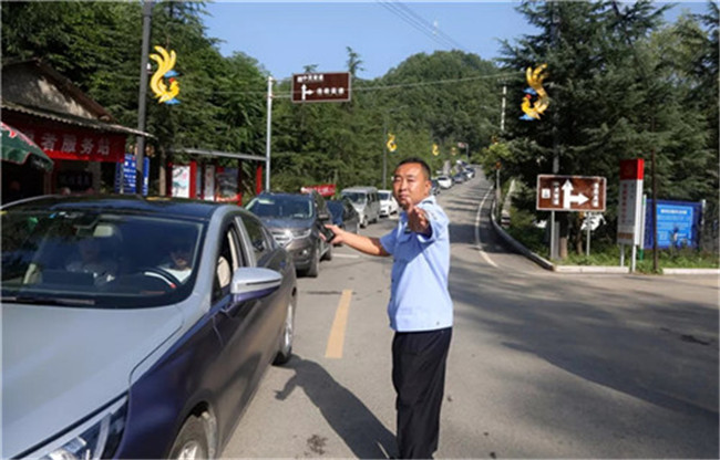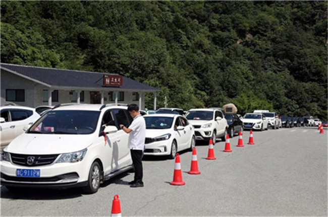 自駕游車輛在工作人員的指揮下有序進入景區(qū)。