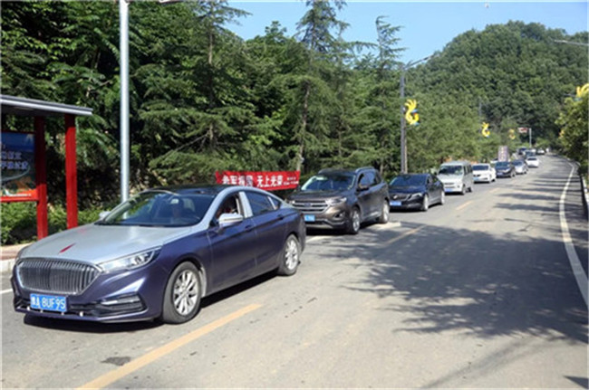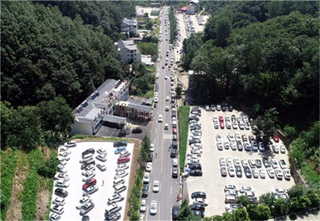 在道路兩旁,車輛依次而停,進出景區(qū)道路暢通無阻,景區(qū)交通秩序良好!