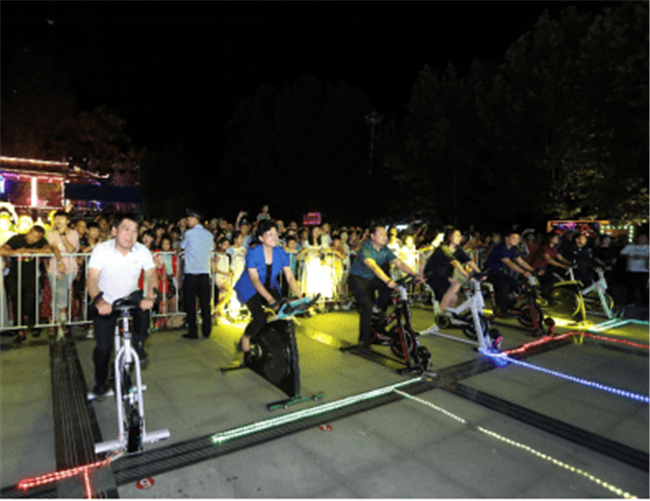 活動現(xiàn)場,嘉賓一起用動感單車發(fā)電點亮舞臺,共同開啟“暑期·快樂老家·嗨起來”盧氏·企鵝山水音樂節(jié),別具一格的互動形式將全場氣氛推向高潮。