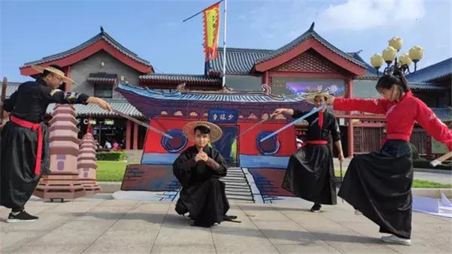 江湖俠客勇闖少林,傳承功夫文化底蘊。一襲勁裝、倚劍江湖。游人化身俠客初入江湖,完成兩臂挑水挑戰(zhàn),再現(xiàn)影視劇中少林小子苦練武藝的經(jīng)典一幕。拜師學(xué)藝,苦練基本功,或屹立如山,盡顯堅忍不拔之志,或金雞獨立,盡顯挺拔帥氣之姿。近距離學(xué)習(xí)少林拳法,起如箭,收如風(fēng),快如流星,力如山崩。配上惟妙惟肖的象形拳,靜若伏虎,動若飛龍,揮灑自如,瀟灑威武,聲名鵲起,名震江湖!除了傳統(tǒng)功夫挑戰(zhàn)外,還特別加入“抖來少林學(xué)武功”短視頻創(chuàng)意挑戰(zhàn),結(jié)合經(jīng)久傳唱的武俠歌曲,展現(xiàn)自己獨門絕學(xué)。歷盡千辛過五關(guān),參與挑戰(zhàn)的游客集齊關(guān)卡印章,成為實至名歸的武林高手,笑傲江湖。同時景區(qū)還為挑戰(zhàn)成功者送上了精美紀(jì)念品及通關(guān)文牒,希望帶給大家一個難忘的中國功夫之旅!