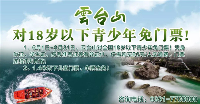 云臺(tái)山暑期免票優(yōu)惠全公告!