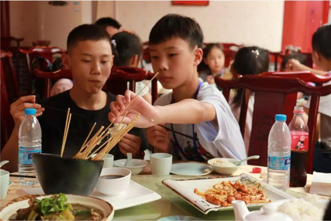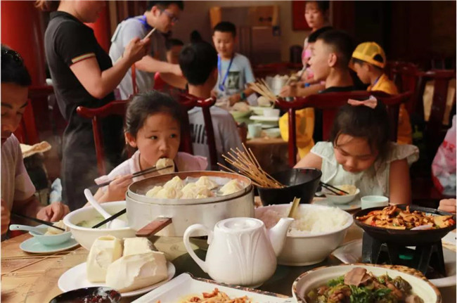 研學(xué)第五課:孫羊正店一看到孫羊正店的旗幟,小記者們就開始熱火朝天地討論起來孫羊正店的歷史,把孫羊正店的背景“扒”得淋漓盡致。小籠包子、紅薯泥、炒涼粉、涮牛肚等正宗豫菜讓吃慣了徽菜的小記者們大呼好吃!