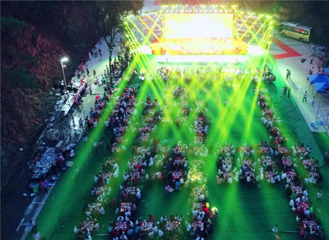 在慶祝祖國七十歲華誕之際, 老君山文旅集團(tuán)也迎來了成立12周年的紀(jì)念日?;顒?dòng)現(xiàn)場(chǎng),老君山景區(qū)擺出260桌宴席答謝鄉(xiāng)親及建設(shè)者,2000余人歡聚一堂,共慶發(fā)展旅游業(yè)帶來的脫貧致富成果,感恩黨和政府帶領(lǐng)大家走向幸福生活。