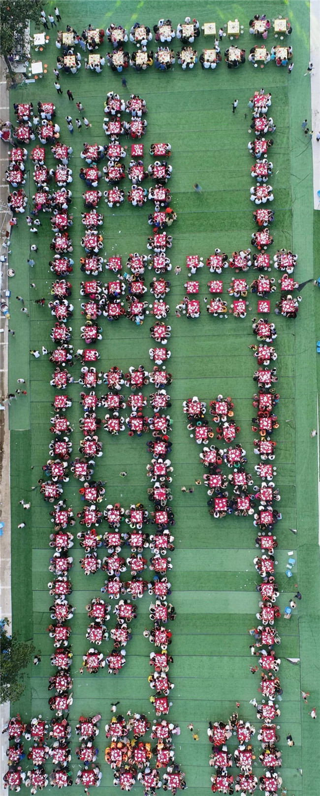 宴席菜肴是當(dāng)?shù)刈罡咭?guī)格的喜宴——欒川八大碗,色香味俱全,260桌宴席拼成巨大的“謝”字,很是壯觀。