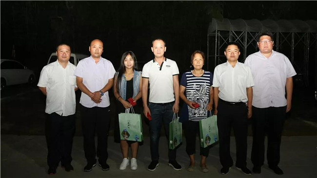 2018年8月4日零點(diǎn),河南老君山檢票口,景區(qū)工作人員為首名參加“慶祝開(kāi)放十周年 高速免費(fèi)我免單”的游客贈(zèng)送禮品。