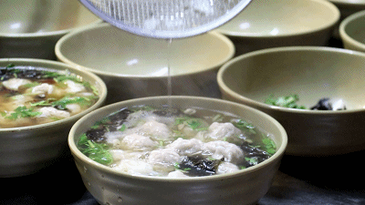 06 鄭記餛飩 鄭老板家的招牌上寫著:“鄭記餛飩實(shí)在鮮,柴雞燉湯秘方含,皮柔滑爽餡鮮嫩,老少皆宜盡開顏?!边x用新鮮食材,現(xiàn)調(diào)現(xiàn)包,把餡的精華緊緊鎖在餛燉皮里,在沸水中快速滾熟,倒入已經(jīng)配好的鮮湯中,一碗鄭記餛燉就這樣出鍋了!
