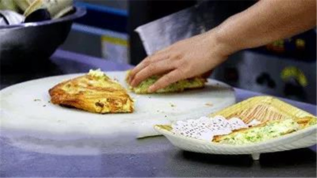 08 孫羊正店·雞蛋灌餅 金黃酥脆的雞蛋灌餅是游客來孫羊正店的必點(diǎn)小吃之一,每個雞蛋灌餅都會實(shí)實(shí)在在的打5到8個雞蛋,再放入絕配的搭檔——蔥花,經(jīng)過高溫加熱,美妙的融合在一起。當(dāng)“滋滋”聲響起時,雞蛋灌餅就可以出鍋了。