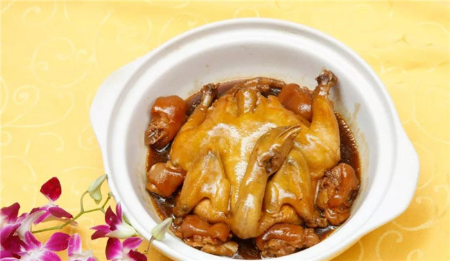 10 孫羊正店·花雕神仙雞 這道菜叫“花雕神仙雞”,是孫羊正店的主打菜品之一,往來賓客必點(diǎn)佳肴。做法簡單,遵循大道至簡的規(guī)律,將整只雞從中切開直接腌制,把豬蹄放入雞內(nèi),加入醬汁,使兩者充分融合。吃一口,地道、得勁!
