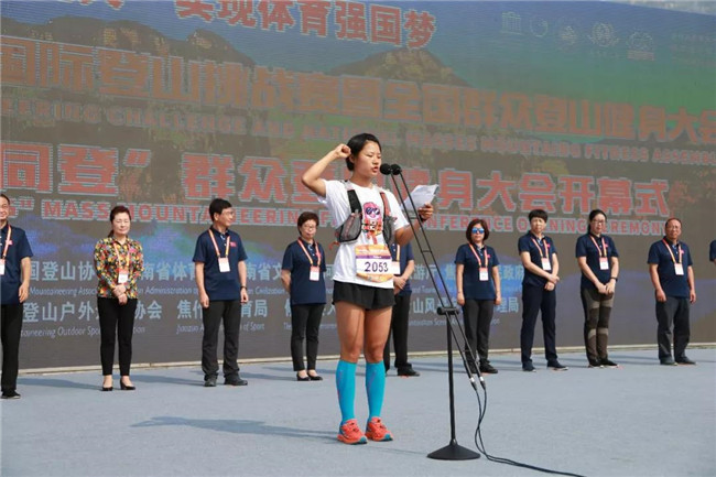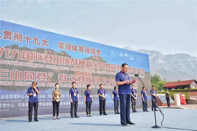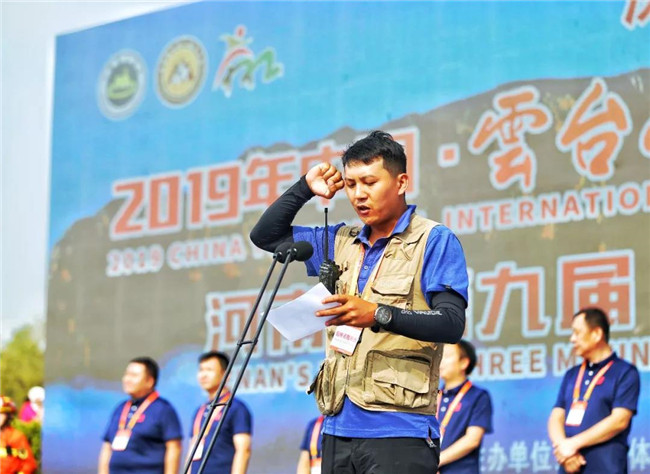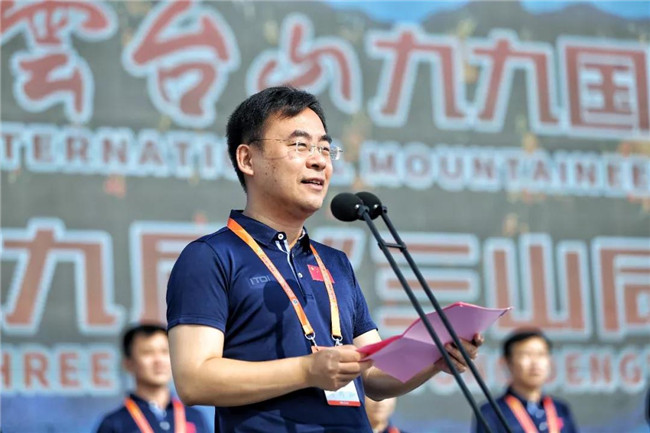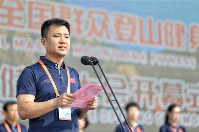 國家體育總局登山運(yùn)動(dòng)管理中心副主任、中國登山協(xié)會(huì)秘書長(zhǎng)張志堅(jiān)宣布登山賽開幕▼