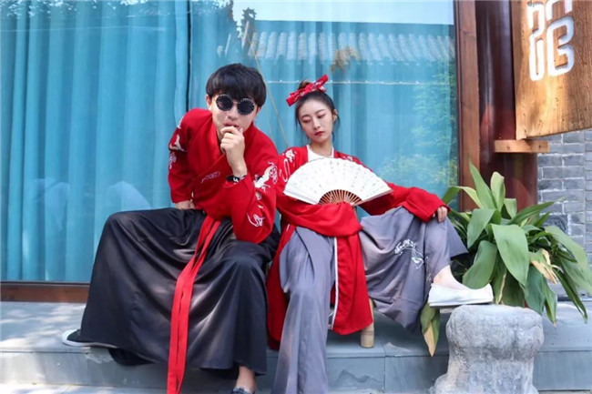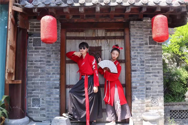 著整齊宋裝入園的游客