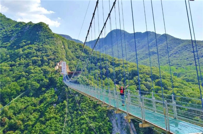 景區(qū)坐擁高山平湖,谷幽林密,一路飛瀑流泉,其中有攬月湖、仙人洞、情人谷、紅石寨等自然景觀,人文景觀--豫西革命紅色文化展覽館以及中原最長266米玻璃橋--飛云天橋、七彩旱滑、漂流戲水等娛樂項目,素有“十里溪谷、嵩岳勝境”之稱。?