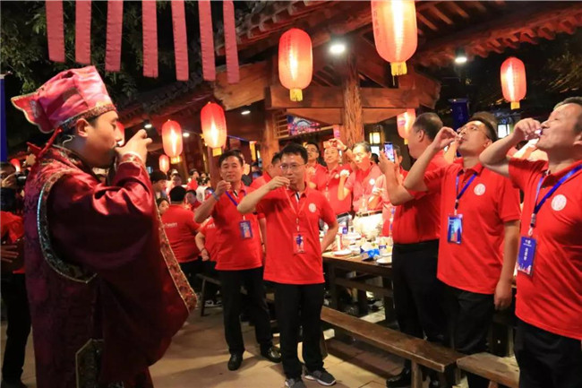 前有御林軍列隊(duì)歡迎,迎接賓客入席,大氣震撼!后有迎送新酒大巡游演員手舉茅臺(tái)酒壇,舉杯邀客共飲,熱鬧非凡!