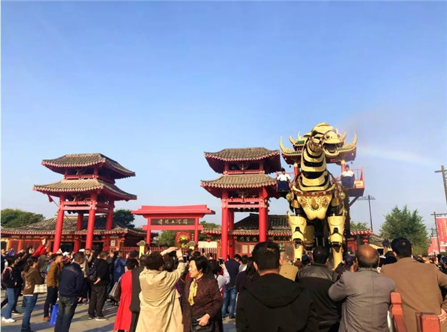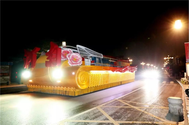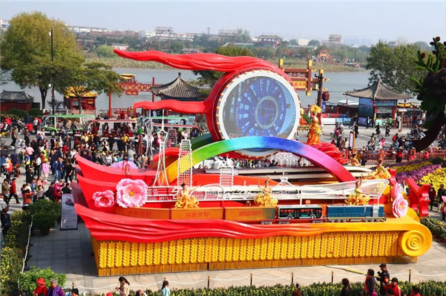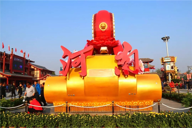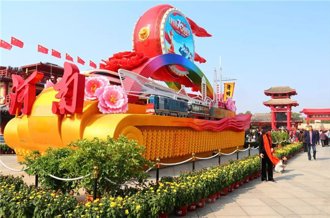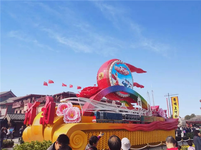 隆重亮相,榮耀中原!國(guó)慶70周年河南彩車“出彩中原”驚艷亮相開封清明上河園!