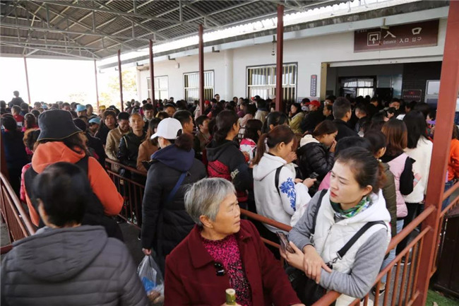 早上八點(diǎn),旅游大巴及自駕車(chē)輛陸續(xù)抵達(dá)景區(qū),游人接踵而至。