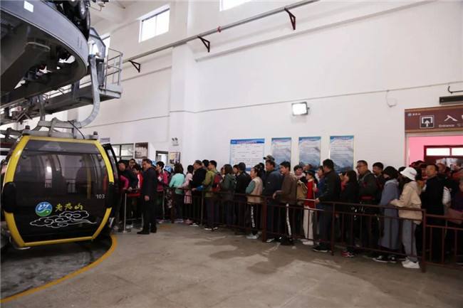 上午十時(shí),云景索道站排滿了等待上山的游客