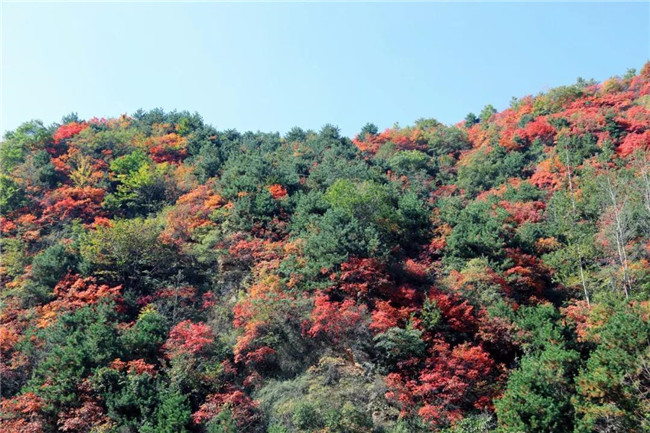 山上,漫山紅遍,層林盡染,不同品種的樹(shù)木把整座大山點(diǎn)綴的五彩斑斕。