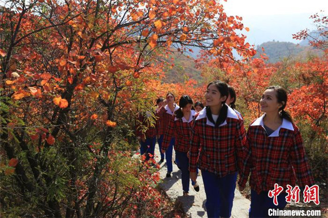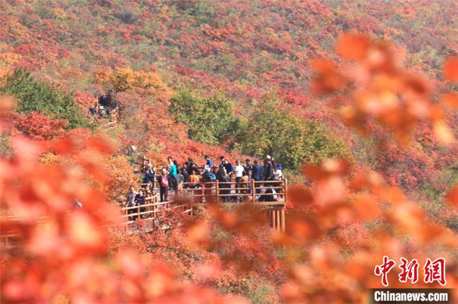 時下已是深秋,位于河南省博愛縣的青天河風景區(qū)秋色斑斕多彩。10月30日,晴好的天氣,青天河風景區(qū)滿山紅葉美如畫卷,吸引眾多游人漫步林間流連忘返,沉醉在最后的秋色中,感受自然之美。