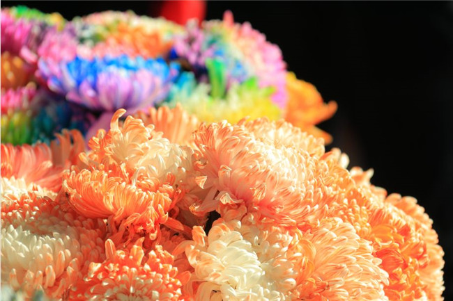 七彩的菊花甘愿為好閨蜜小橘充當(dāng)背景,姐妹情深啊~