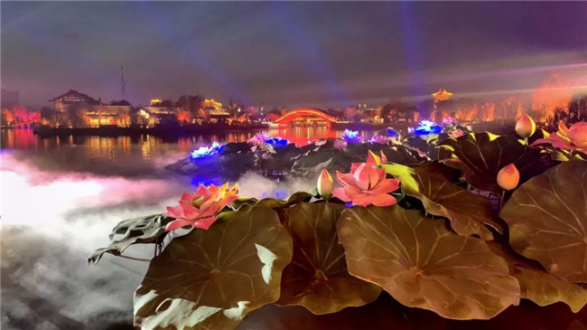 水幕上寫著“清明上河園歡迎您”,沒錯!我們就是細節(jié)狂魔~3、菡萏香融