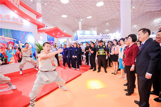 博覽會(huì)期間,河南省文化和旅游廳在展會(huì)大廳舉行了“豫見中國·老家河南”文化旅游專場推介會(huì),河南省文化和旅游廳廳長姜繼鼎、副廳長周耀霞出席了推介會(huì)。河南省文化和旅游廳廳長姜繼鼎在推介會(huì)致辭中表示,河南是中華民族和華夏文明的重要發(fā)祥地,中國八大古都有四大古都在河南;河南段黃河在母親河中占據(jù)有突出的地位,黃河文化是中華民族的根與魂;河南是中國功夫“少林拳”、“太極拳”兩拳的發(fā)源地;河南濮陽是中國雜技故里;河南大別山、伏牛山、太行山奇山麗水,文旅資源豐富,是休閑度假的好去處……希望廣大參展商和社會(huì)各界朋友共同傳播河南聲音、講述河南故事,到河南品文化、游山水、學(xué)功夫。