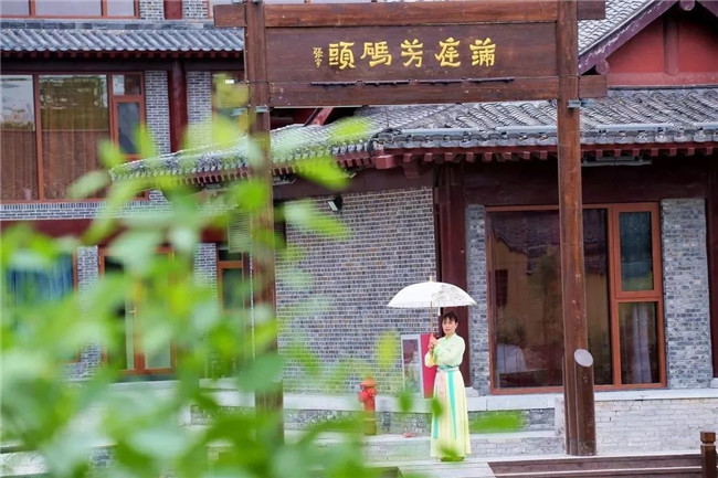 相比滿庭芳,官驛同樣復(fù)古典雅??蜅@锊菽旧n翠,三面環(huán)水、環(huán)境清幽、舒適自然、怡然自得!