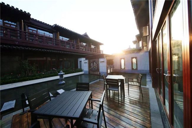 再看窗外,整體采用圍合庭院設(shè)計,處處彰顯宋氏美學(xué),園內(nèi)流水潺潺、意境深遠(yuǎn)。此刻,方能體會到時尚與古樸的巧妙融合,真可謂“花開滿庭芳,一夢回汴京”。