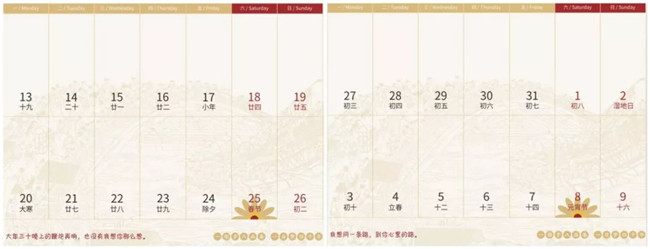 臺歷整體風(fēng)格色彩艷麗、活潑靈動,