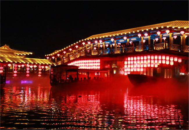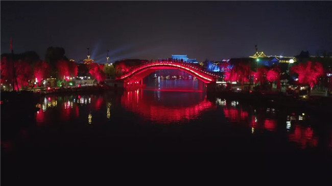 夜晚的第四個(gè)精彩,是從雙亭橋碼頭出發(fā),乘船夜賞新汴梁八景的體驗(yàn),從《大宋·汴河燈影》到新汴梁八景,提升之后,更有韻味,更加浪漫。