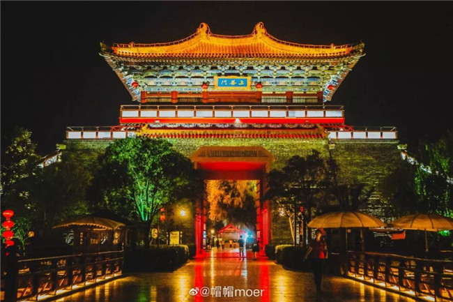 夜晚的第五個(gè)精彩,是抬頭仰望上善門(mén)的高大巍峨。緩緩地從城門(mén)下經(jīng)過(guò),踏著被燈光映成紅色的石板,像是一腳踏進(jìn)了東京城,在千年之前,是不是也有人輕輕地走過(guò)。