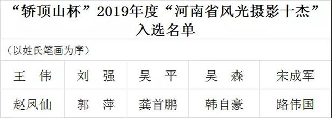 “轎頂山杯”2019年度“河南省風(fēng)光攝影十杰”入選名單
