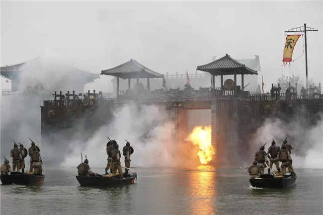 在大型劇目中,運(yùn)用了現(xiàn)代電影特技的表現(xiàn)手法,比如,《岳飛槍挑小梁王》大型馬戰(zhàn)演藝,一戰(zhàn)成名,一炮打響,一座難求;比如,《大宋?東京保衛(wèi)戰(zhàn)》大型戰(zhàn)爭(zhēng)演藝,演員近一百人,營(yíng)造了一個(gè)烽火連天的宋代戰(zhàn)爭(zhēng)場(chǎng)景,一經(jīng)推出,立即受到了游客的熱烈追捧。
