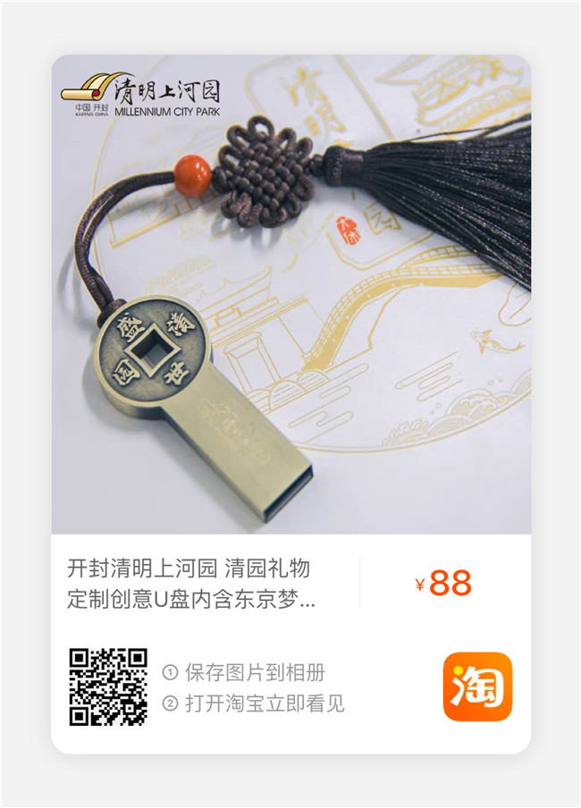 想提前傾聽八闕宋詞經(jīng)典吟唱的小伙伴,保存下方圖片,打開淘寶即可購買內(nèi)置八闕宋詞歌曲的《大宋·東京夢(mèng)華》U盤。