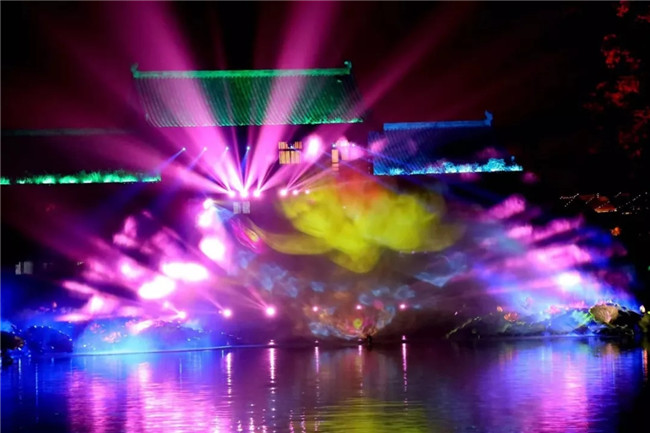 自二0一七年開始,景區(qū)將營業(yè)時間由原來的八小時延長至十五小時,將現(xiàn)代科技元素融入到傳統(tǒng)文化景觀中,運(yùn)用燈光色彩的靈活變換,在晚間呈現(xiàn)出與白天完全不同的景致。