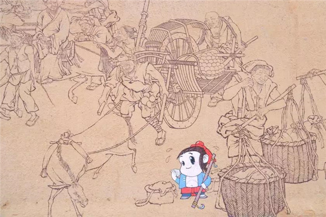 接下來咱們來說說清園里的壁畫藝術(shù)。細(xì)心的你們有沒有發(fā)現(xiàn),園子里墻壁上總有一些別致的圖案。這些壁畫都是由清明上河園宜谷畫院院長焦衛(wèi)東創(chuàng)作的,可愛的清明娃跑到了《清明上河圖》上,妙啊~