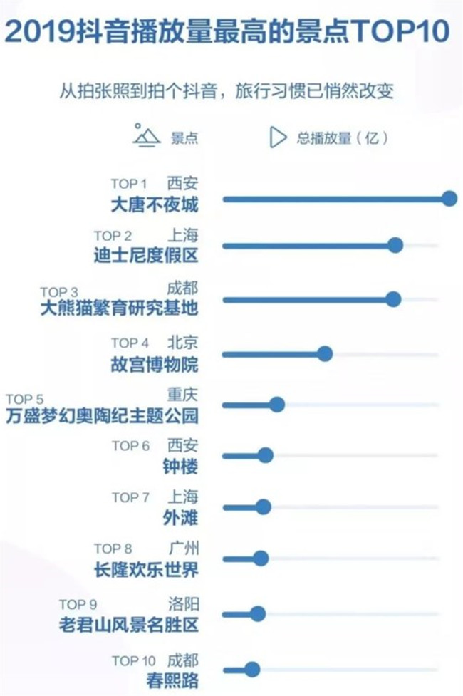 報(bào)告顯示,通過抖音的傳播,讓更多不為人知的美景走紅,從而催生出文旅“打卡經(jīng)濟(jì)”。而在2019抖音播放量最高的景點(diǎn)TOP10排行榜中,老君山躋身前十,成為河南省唯一上榜景區(qū)!