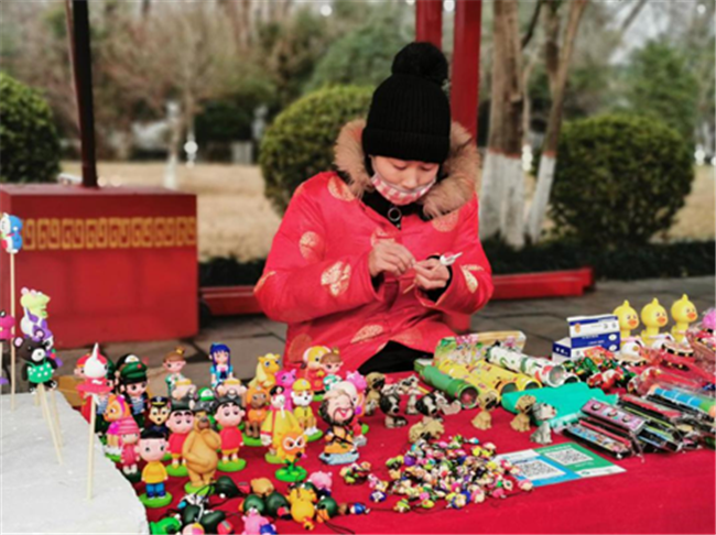 記者跟隨人群進入到灞陵橋廟會場區(qū),僅在進門處,就有捏面人、糖人、漢服展示以及節(jié)目表演等項目,吸引了大批游客駐足。