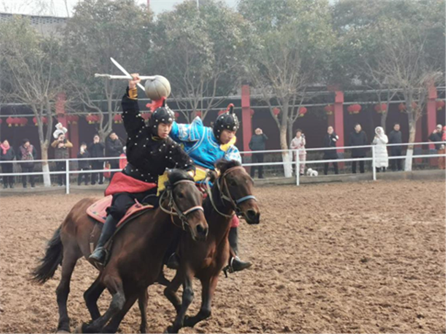 隨著人群向園區(qū)內(nèi)深入,記者看到,園區(qū)內(nèi)專門開辟了一處空地,用來表演大型馬戰(zhàn)節(jié)目《三英戰(zhàn)呂布》。一方面更好的展示了許昌的三國文化,也讓前來游覽的游客們身臨其境的感受了一番古戰(zhàn)場將領策馬廝殺的熱血豪情。