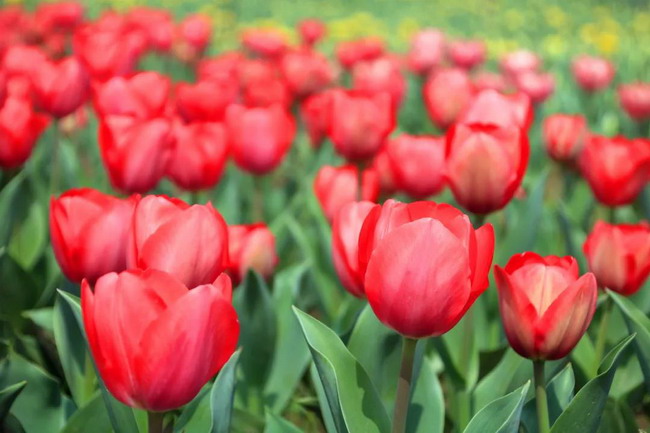 紅色的郁金香好像一團團火焰;