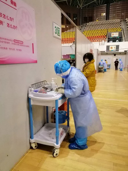 馬亞楠在武漢市青山區(qū)方艙醫(yī)院