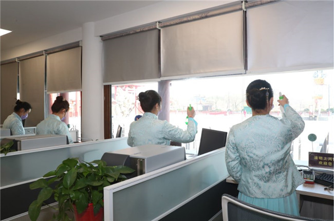 景區(qū)對辦公區(qū)域、公共區(qū)域、設(shè)施設(shè)備進行全面消毒,特別是景區(qū)密閉建筑、游樂設(shè)備、餐飲場所等進行消毒、通風(fēng),共同守護好景區(qū)這方凈土。