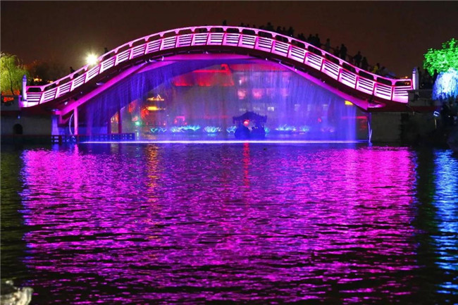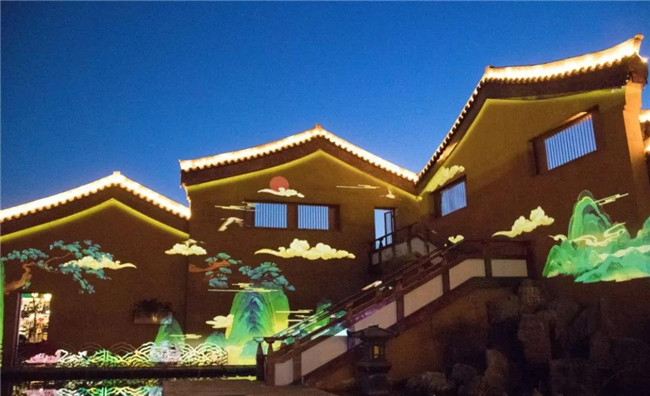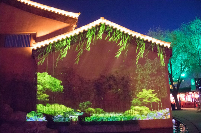 禧墻的夜間,通過(guò)激光投影和音樂(lè)的交融,演變著一年四季的景色變幻。