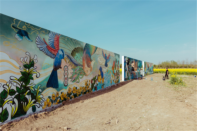 鶴飛沖天、白鷺和鳴、鳳棲梧桐……一幅又一幅色彩鮮明,栩栩如生的飛禽涂鴉墻,畫出了封丘得天獨(dú)厚的生態(tài)優(yōu)勢,也畫出了國潮花海的靈動(dòng)風(fēng)華。黃河春暖,百鳥歸來,油菜花海等你來“潮”!